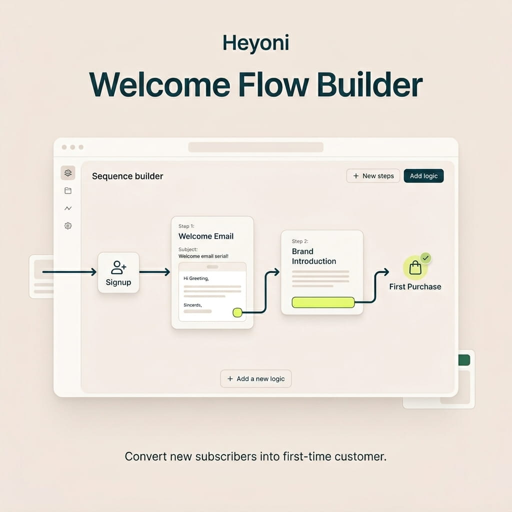 Welcome Flow Builder helps ecommerce brands create clearer welcome sequences that introduce the brand, build trust early, and guide new subscribers toward their first purchase.