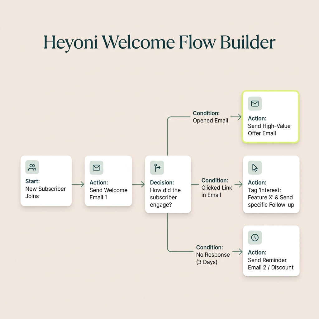 Use simple flow logic to guide new subscribers through the right next step, whether they open, click, or keep moving through the sequence.